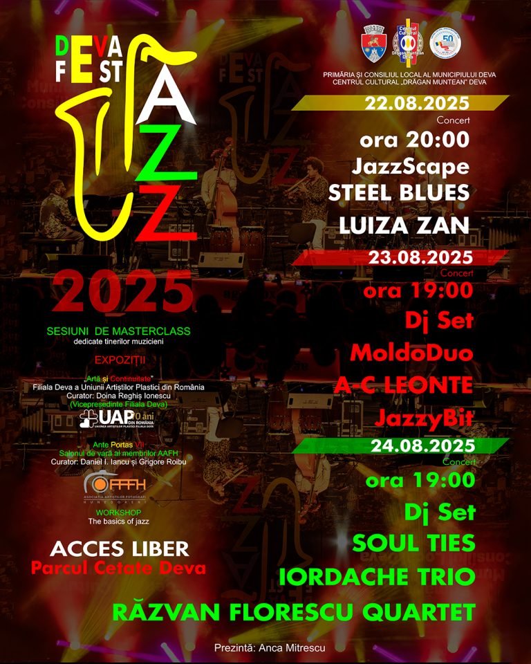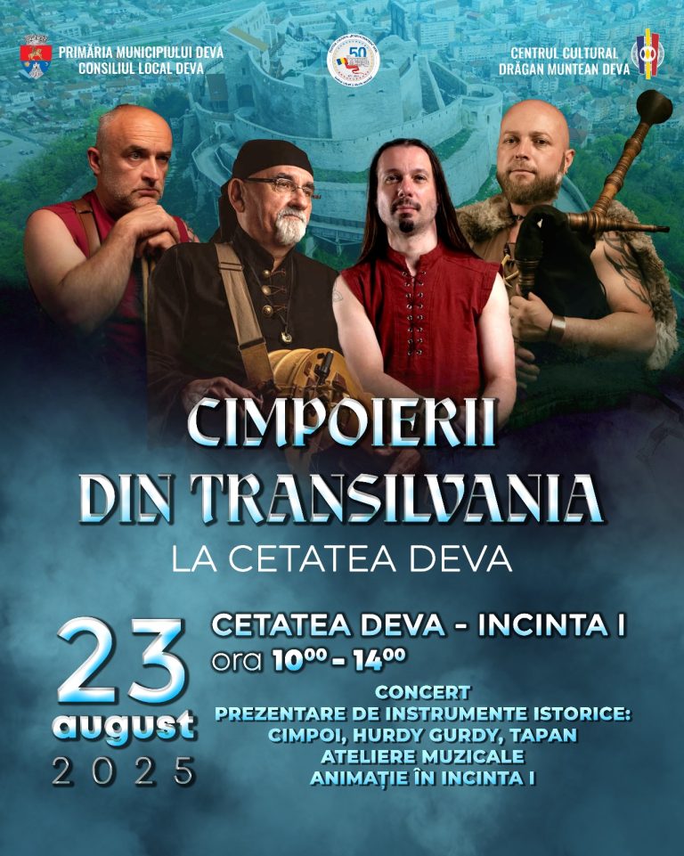 Primăria Municipiului Deva și Centrul Cultural „Drăgan Muntean” vă invită miercuri, 23 iulie 2025, de la ora 20:00, la o