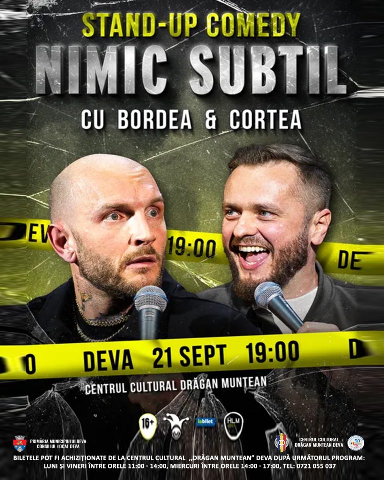Primăria Municipiului Deva și Centrul Cultural „Drăgan Muntean” invită publicul la o porție autentică de umor: Stand-Up Comedy cu Bordea