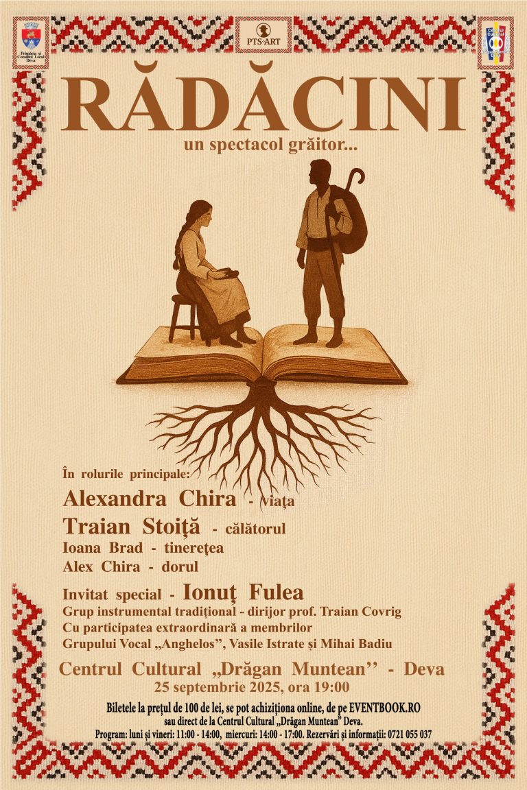 Primăria Municipiului Deva și Centrul Cultural „Drăgan Muntean” vă invită să trăiți o experiență culturală profundă: „RĂDĂCINI”, un spectacol care