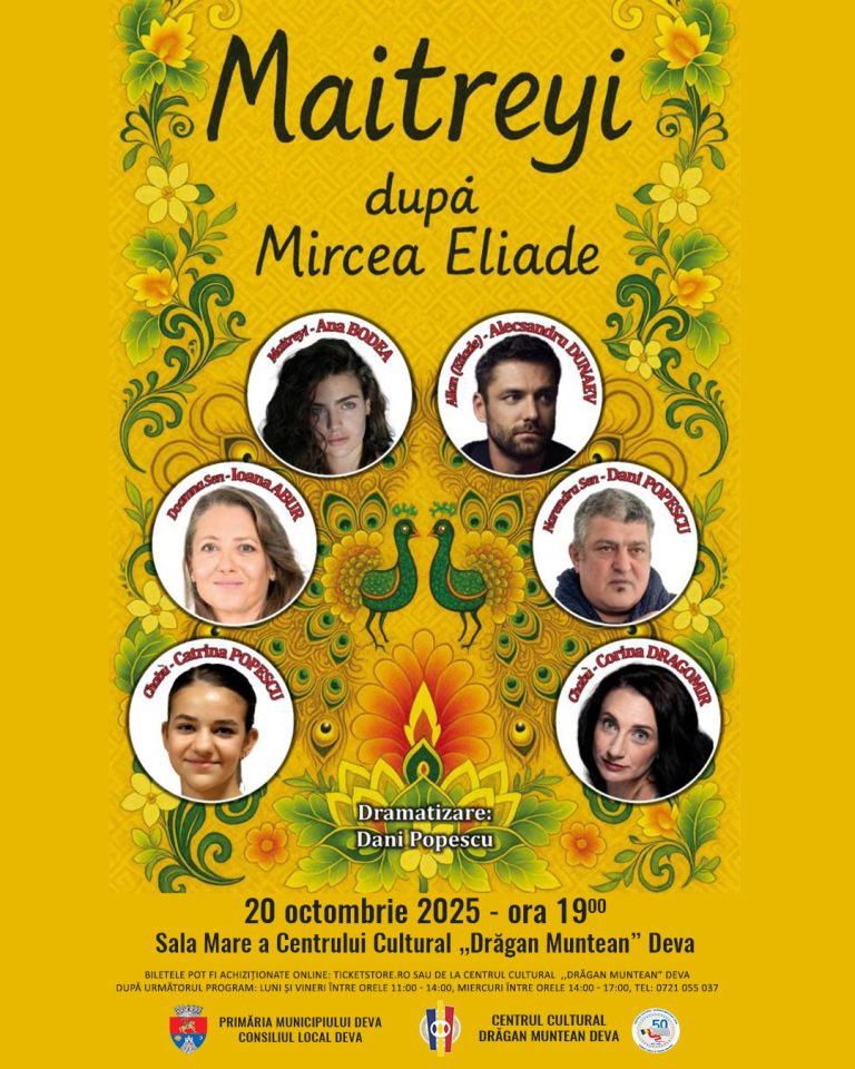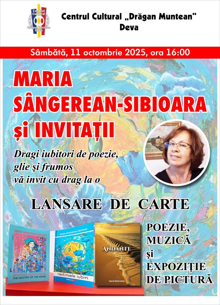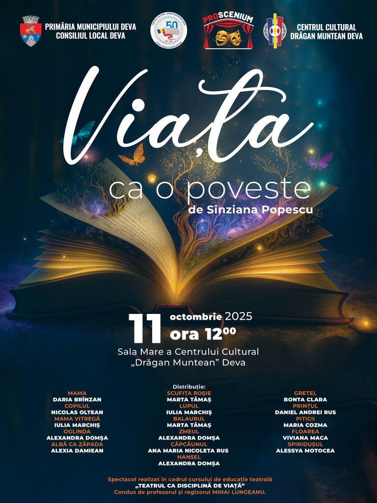 Primăria Municipiului Deva și Centrul Cultural „Drăgan Muntean” organizează sâmbătă, 11 octombrie 2025, de la ora 12:00, în Sala Mare
